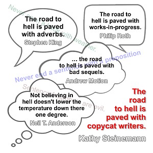 Oh, and avoid comma splices, I hate comma splices, they make prose difficult to understand, did you see how many I used, don’t they make this section complicated to comprehend? ’Nuff said. [Kathy grins.]